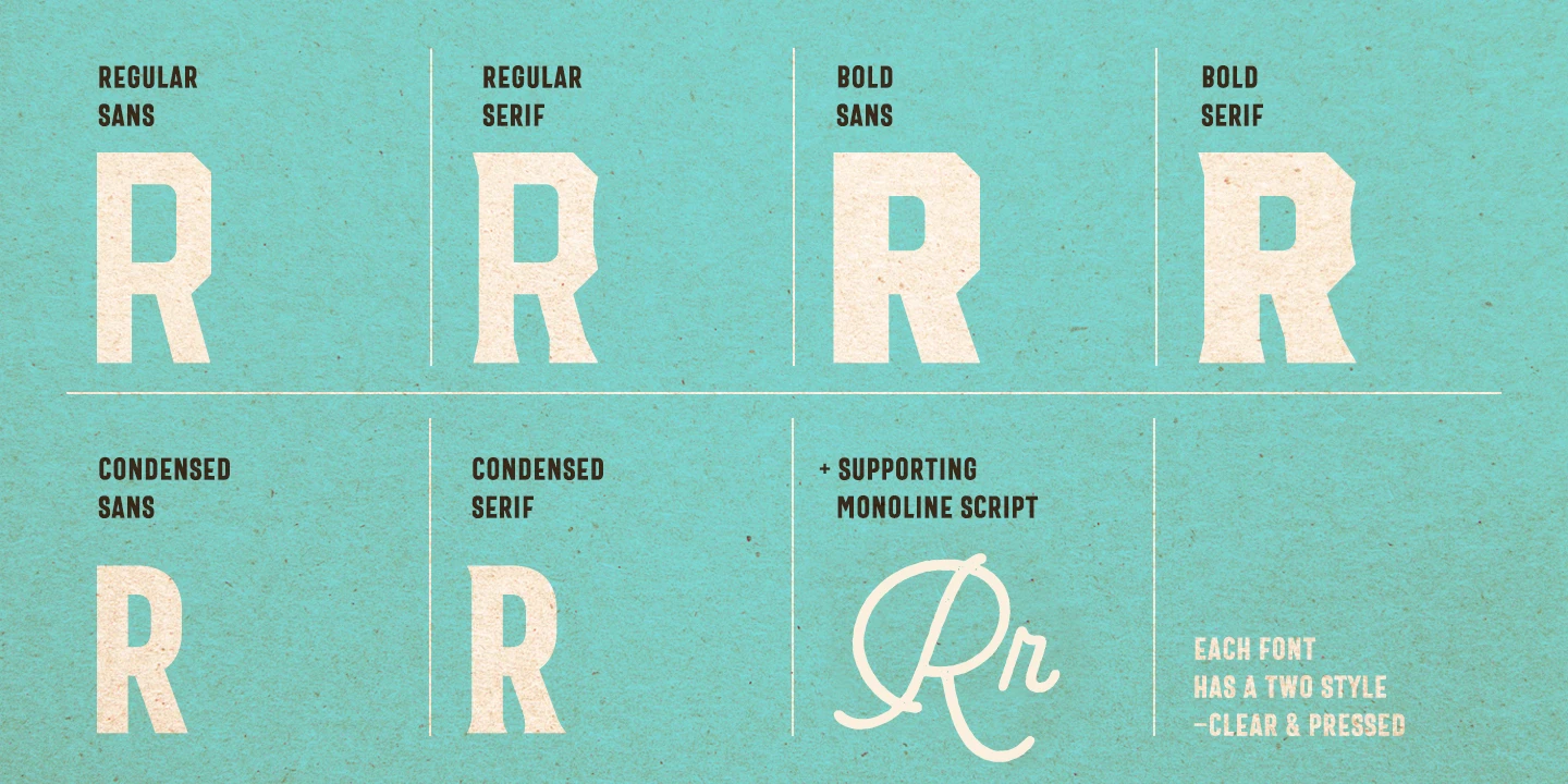 The collection allows for countless combinations, whether going for a worn, pressed serif look or a cleaner, modern sans. Alternate characters add extra variety to fine-tune your typography. Bartender is built to deliver striking, nostalgic results across any creative project.