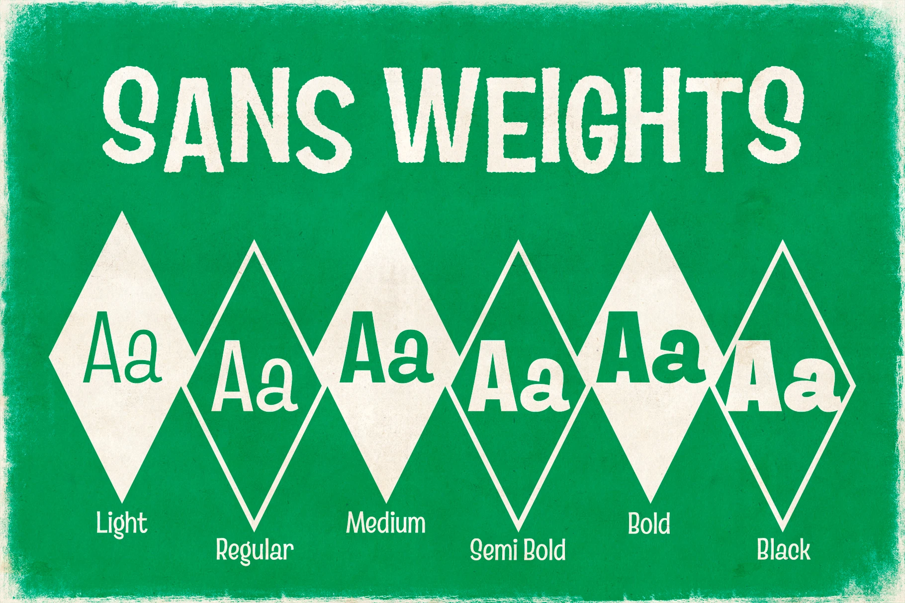 The Country Blues is a lively font family inspired by vintage vinyl covers, retro sports culture, and classic rock’n’roll vibes. The sans-serif comes in five widths, ranging from light to black, and includes stylistic alternates for a more personalized look. It works especially well in all caps with a playful baseline but also holds up in clean, structured text layouts.