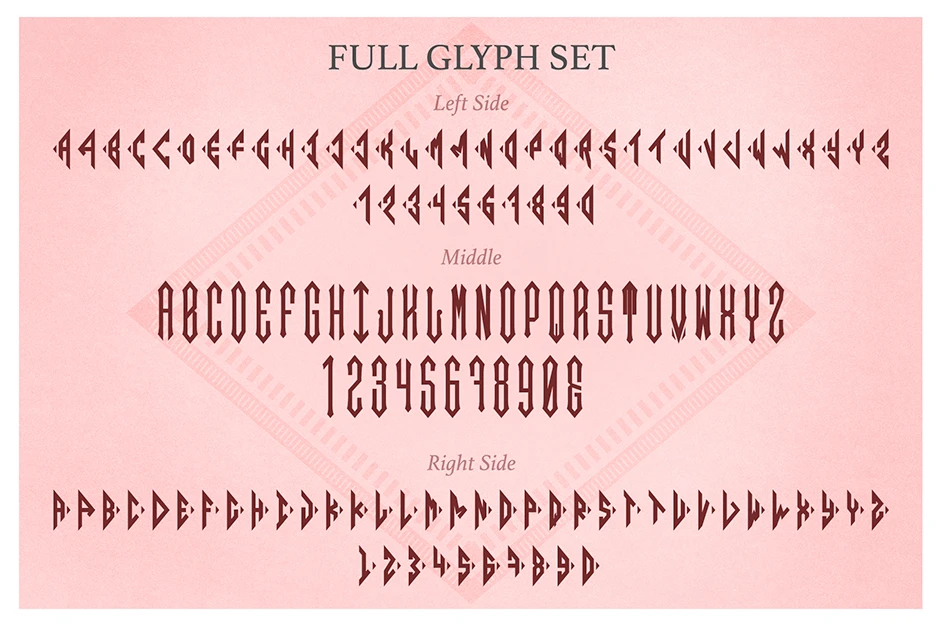 Diamond Monogram is a set of three typefaces designed for creating two- or three-letter monograms with a clean mid-century sans style. Includes a full basic Latin set, numerals, and a central ampersand. Uppercase and lowercase forms offer alternate styles for added variety. Ideal for logos, personal branding, stationery, and decorative initials. Built for simple, stylish monogram creation with minimal effort.