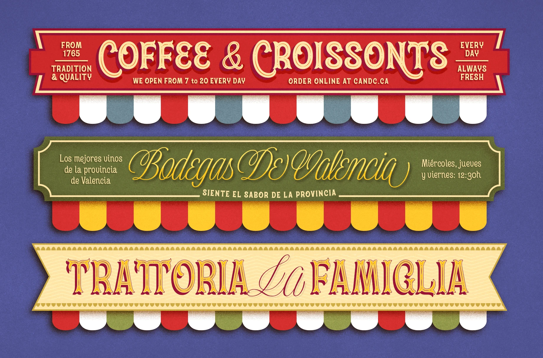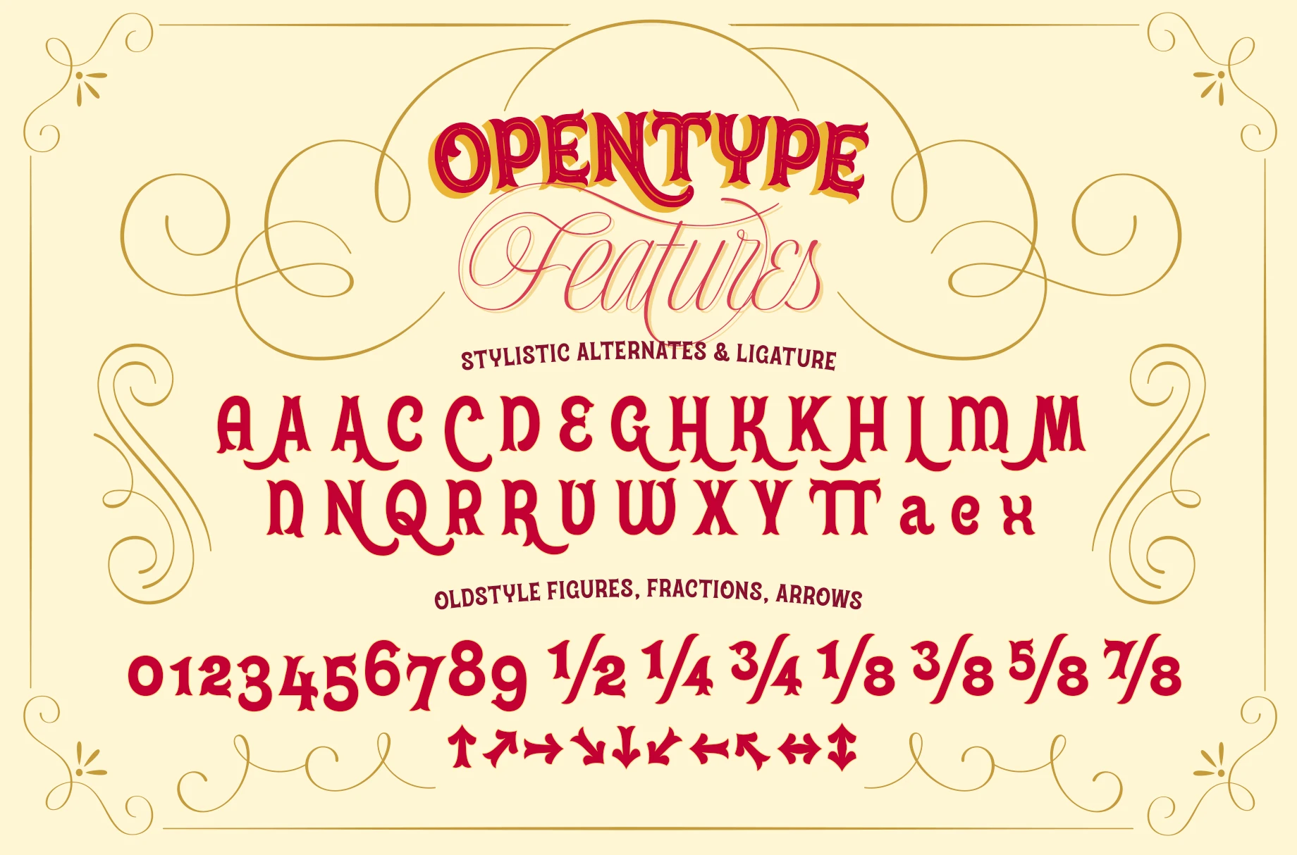 This pairing works beautifully for holiday branding, packaging, invitations, seasonal marketing, and storytelling visuals. With its rich character and vintage flair, it adds depth and atmosphere to posters, logos, cards, and editorial layouts. A perfect choice for projects that call for a touch of tradition and seasonal magic.