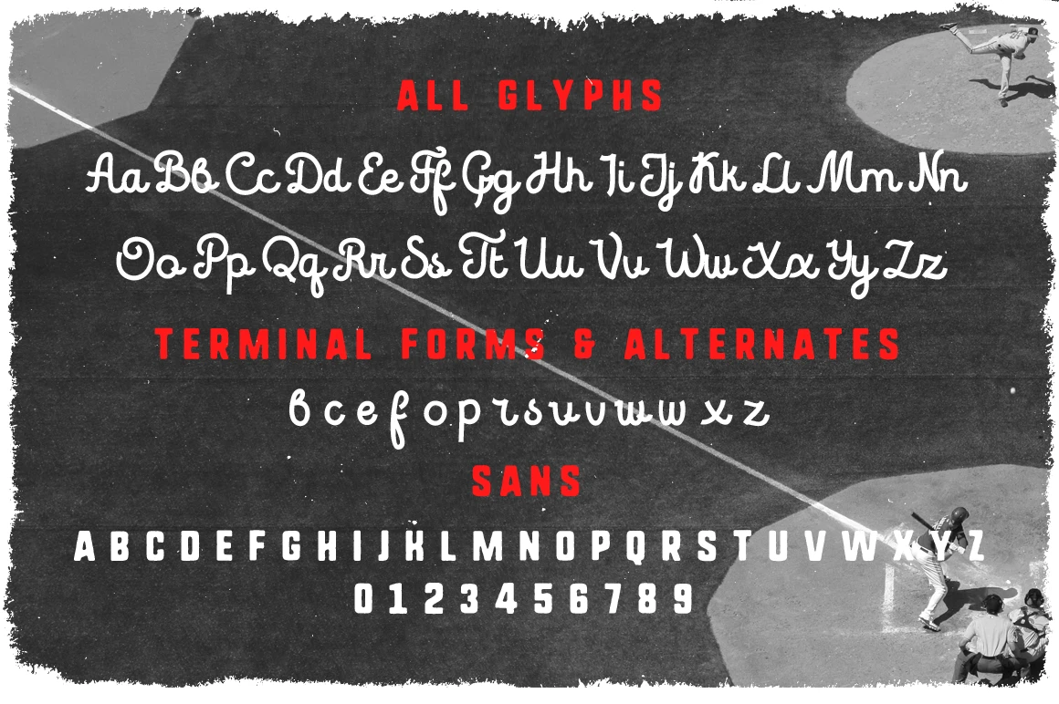 Felway is a vintage script font inspired by classic American sports lettering and retro typography. It draws from the old-school scripts found on vintage baseball jerseys and team logos. The set includes two script styles — Regular and Vintage — along with a matching vintage sans-serif. Ideal for logo design, t-shirts, posters, cards, and any project with a nostalgic athletic feel.