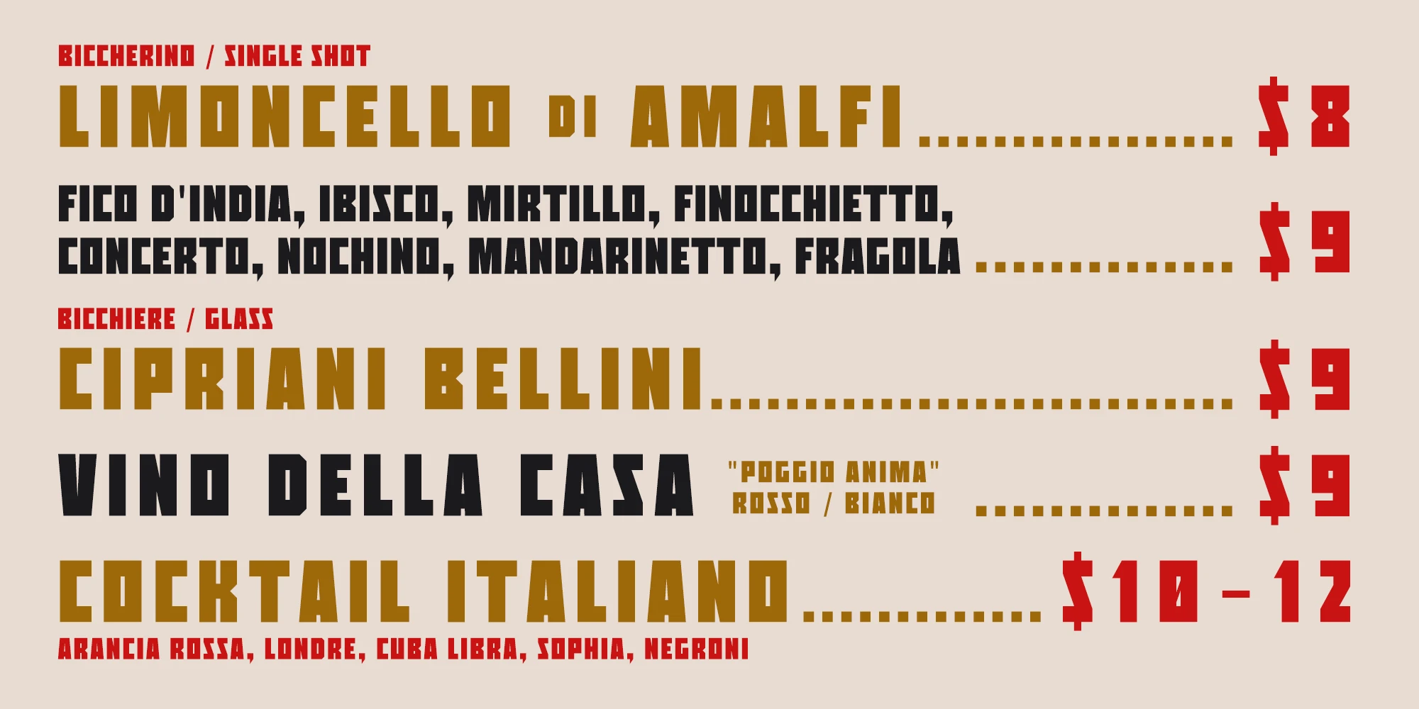 Fonti Bruno is a bold display typeface rooted in Italian street typography of the 1950s–70s, recalling the blocky, geometric lettering of posters and signage. Made entirely of flat sides, it is available in Solid, Fade Inset, and Decorated — pushing contrast and dimensional play, creating a striking effect. With its strong verticals and graphic presence, Fonti Bruno is well-suited to posters, record sleeves, packaging, or branding projects that call for an assertive typographic voice.