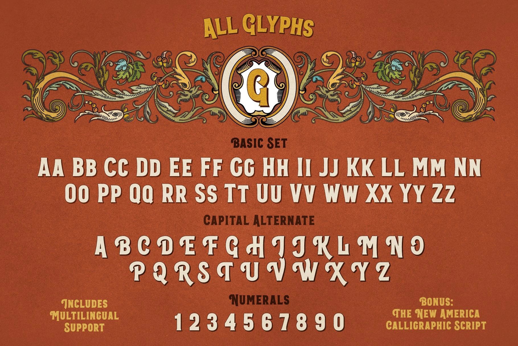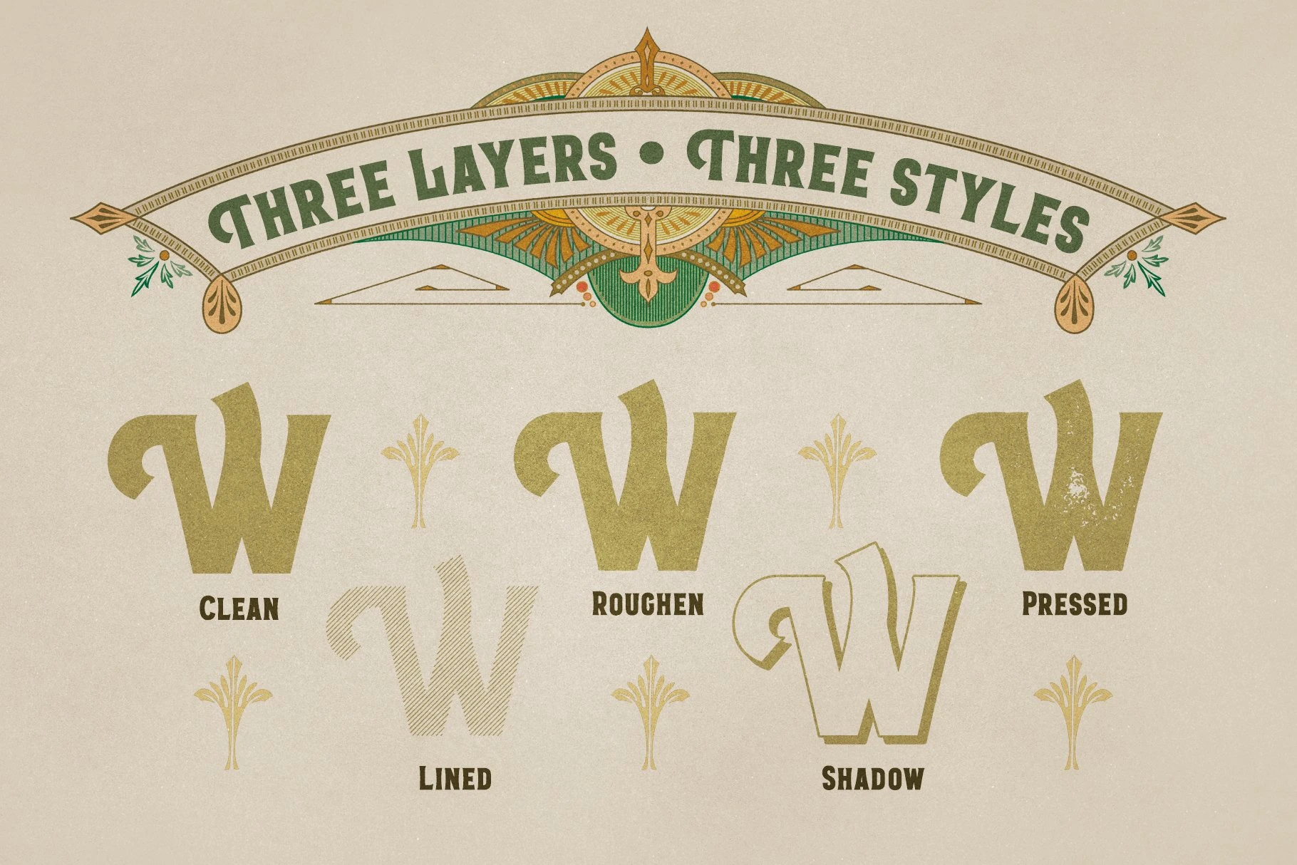 Golden Horn is a gently crafted typeface with a vintage touch. Offers multiple style variations for creating authentic retro designs. Pressed and rough styles bring a worn, classic look, while the clear and lined versions give a softer, refined feel. Using the basic set alone delivers a modern, clean appearance. Perfect for logos, packaging, posters, and any project needing a mix of vintage charm and contemporary style.