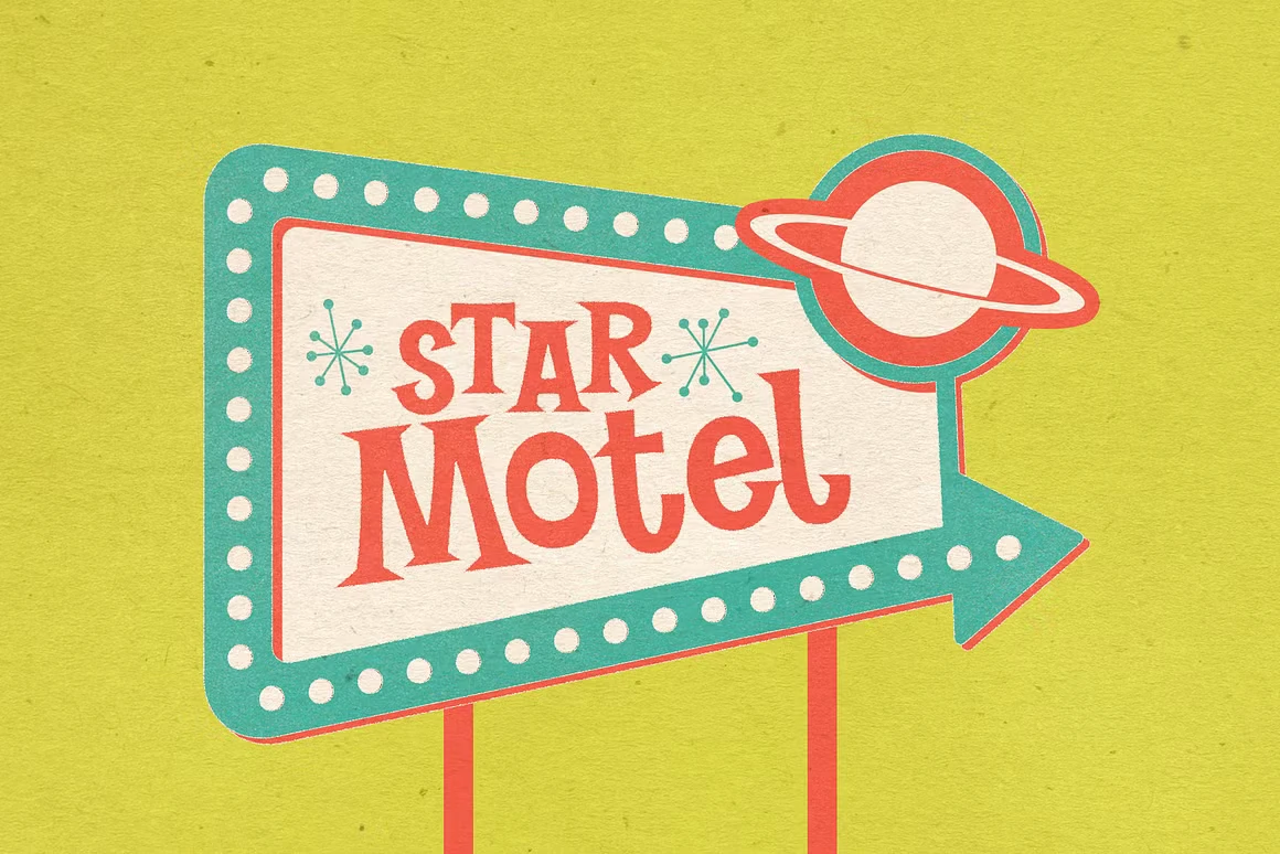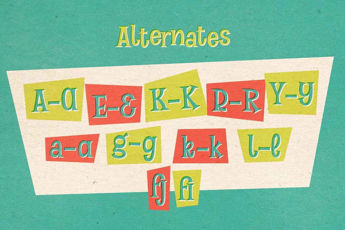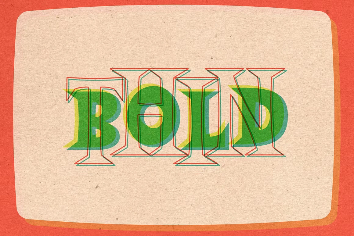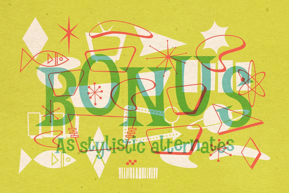 Available in Thin, Light, Regular, Medium, and Bold, Halau Serif is a great fit for displays, signage, logos, posters, marketing materials, apparel, websites, and apps with a retro flair. Includes fractions, standard and discretionary ligatures, superscript, and alternate letterforms. Also features fun midcentury graphic elements like sparkles, TV screens, and classic shapes for added versatility. Designed to deliver a bold and breezy vintage look across creative projects.