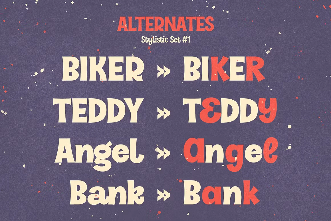 Halau is a fancy retro font family with a clear, elegant, and playful vibe. Inspired by 1960s–70s cartoon ads and Hawaiian poster design. Perfect for sunny, seasonal projects like summer campaigns, beach-themed packaging, or retro branding. Features multiple width styles for dynamic combinations and standout typography. Includes alternates for select characters to add personality and variation. Also offers a unique illustration set as letter and numeral alternates, bringing an extra dose of Hawaii-style charm. Designed to brighten up any creative work with fun and flair.