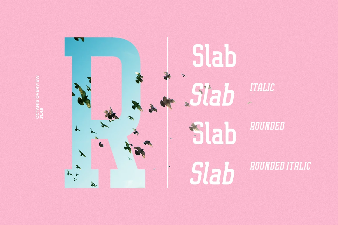 | Octanis Slab Family Styles included • Regular • Rounded • Regular Italic • Rounded Italic $47.99 |