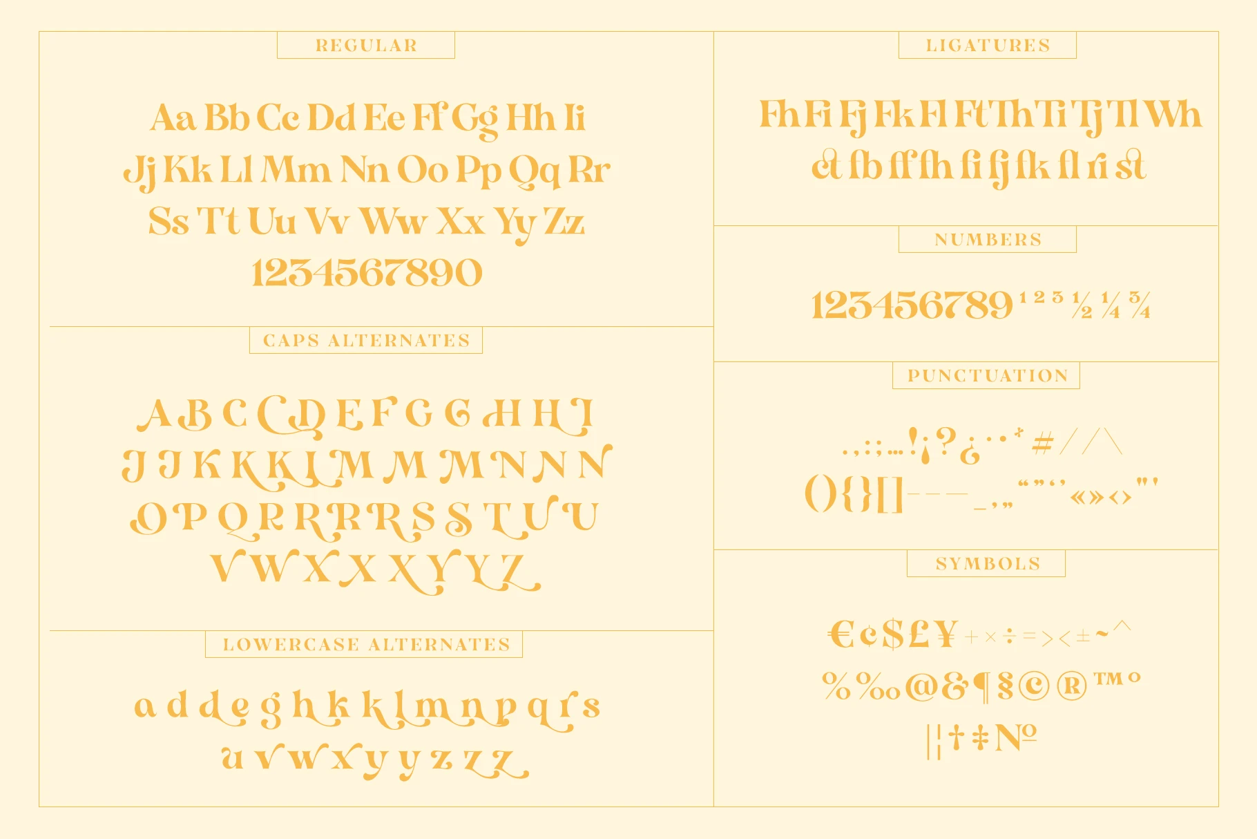 Organum is an elegant serif font family with contrasting vertical and horizontal strokes. Offers a range of weights, from Thin to Black, to suit various design needs. All-caps styling gives a classic Didone look, while mixed case creates a more playful, modern feel. Normal and Medium widths work well for text blocks, while the extremes bring impact to headlines. Each letter pairs naturally with the next, mimicking the flow of hand lettering. Suitable for minimal, refined layouts or bold, typographic designs. Includes discretionary ligatures and stylistic alternates for added individuality.