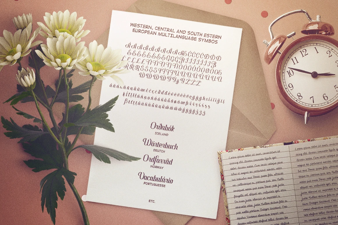 Pasternak is a vintage romantic script font designed with elegance and charm. Perfect for logos, wedding invitations, prints, and decorative elements. Features flowing letterforms that add warmth and sophistication to any design. Ideal for projects that need a classic, heartfelt touch.