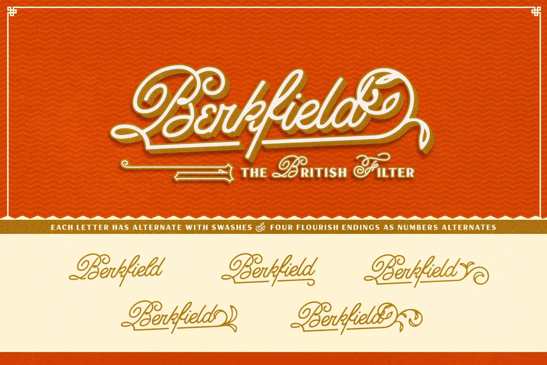 The script includes stylistic alternates with swashes for each letter — initial, middle, and final — making it easy to create flowing, decorative text of any length. Complete with a set of vintage-style decorations, Signscape is ideal for signage, packaging, branding, posters, and other projects needing a rich, historical touch.