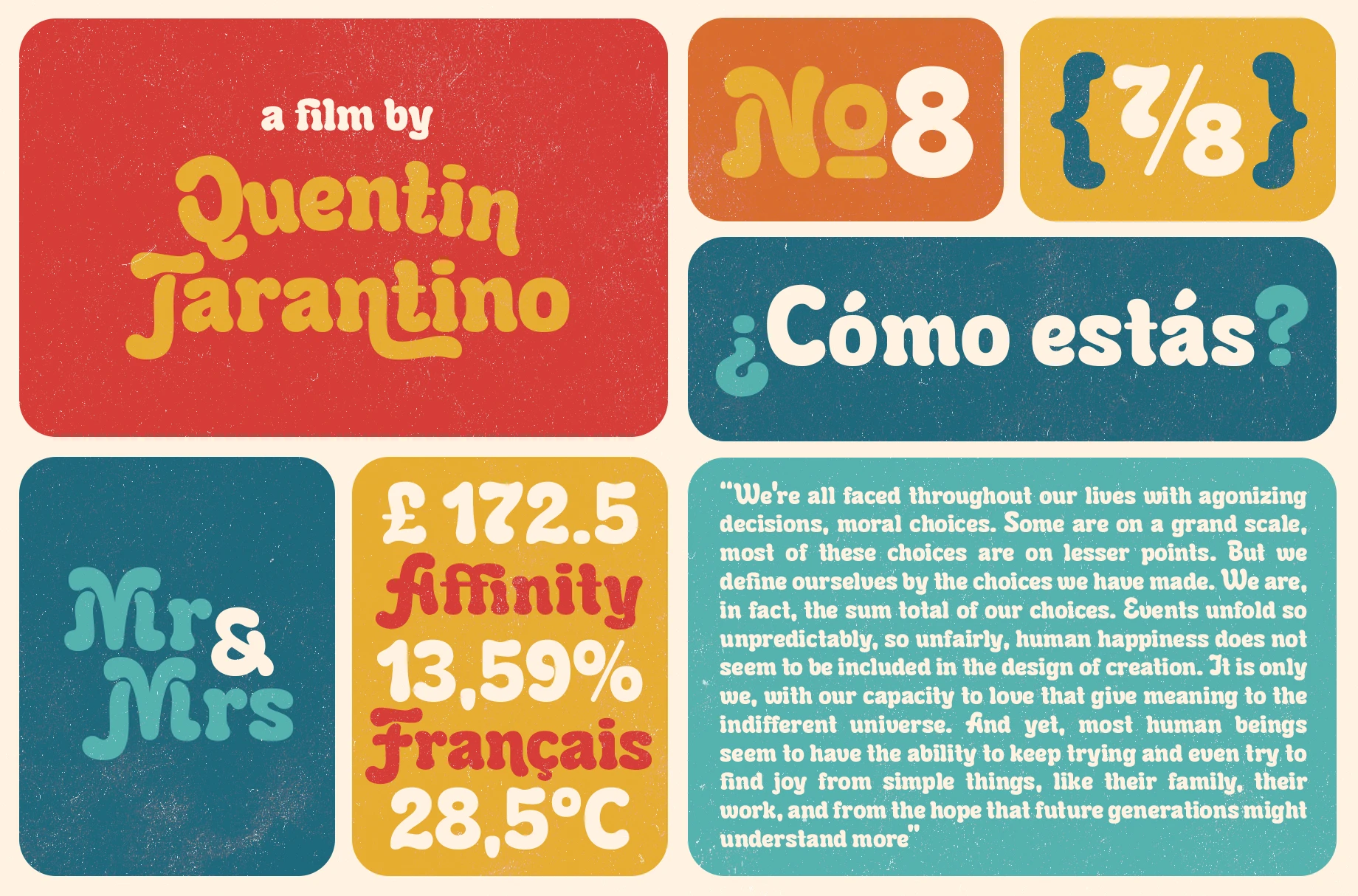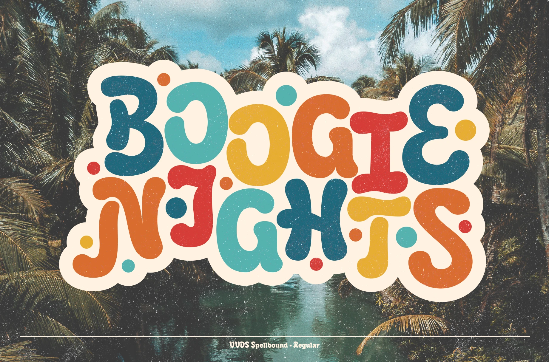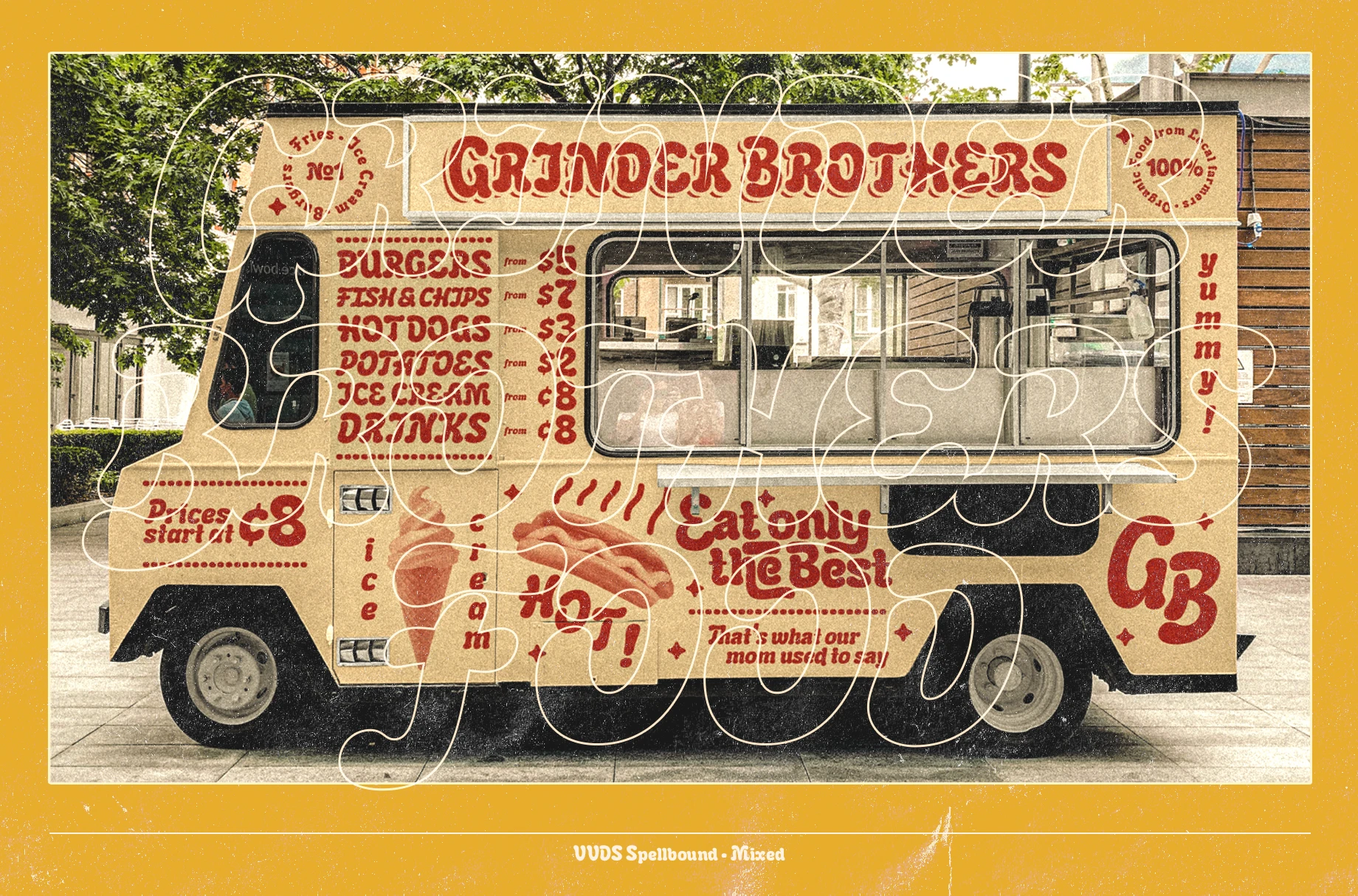 Spellbound is an authentic groovy typeface inspired by the late 70s and early 80s aesthetic. Smooth, playful, and full of retro character, it’s perfect for vintage-themed designs. Works especially well for display block texts like package labels, headers, t-shirt prints, and stickers. Offers a wide range of creative options with multiple alternates — two for each capital letter and up to six for lowercase. Includes both Regular and true Italic styles for dynamic pairings. Built with OpenType features for flexible, expressive typography.