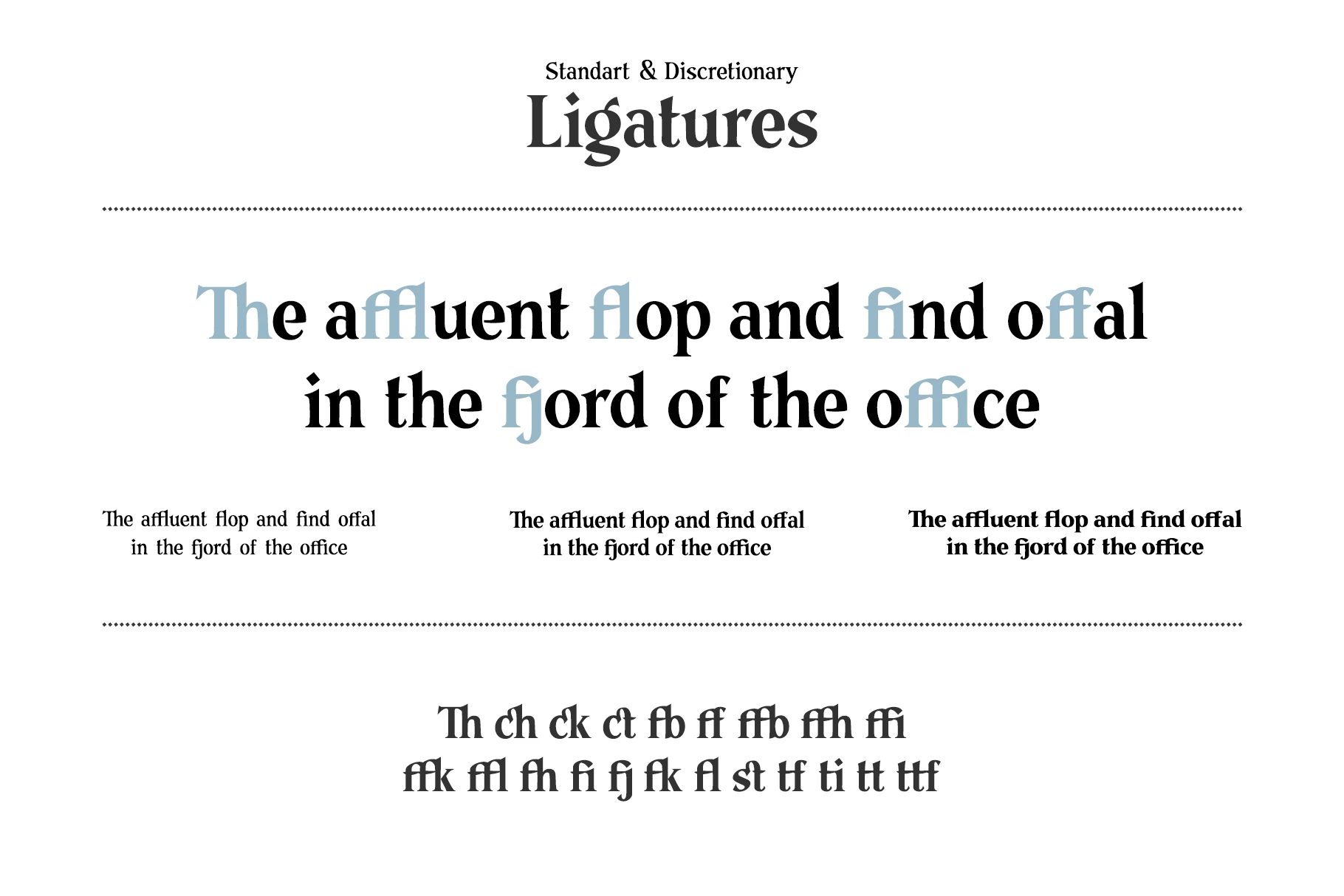 The Light style is ideal for body text or light headers, especially when using wide tracking with capitals. Regular works well for quotes, subheaders, and simple slogans. Bold is built for powerful titles — strong and commanding, yet refined. Includes standard and discretionary ligatures through OpenType features. Made for elegant, vintage-inspired typography with a professional tone.