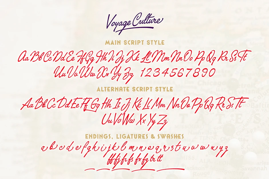 | Voyage Culture Script Family Styles included • Regular $14.99 |